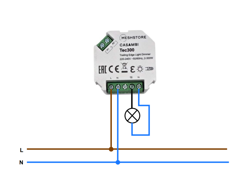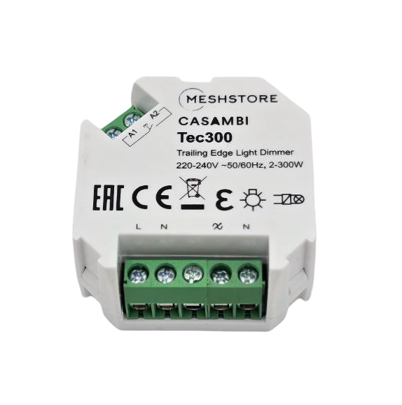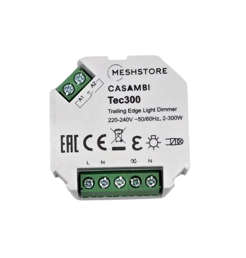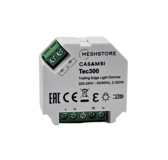 Triac димер casambi "Tec 300" регулирует яркость светильников отсечкой по заднему фронту и поддерживает тип нагрузки RC.