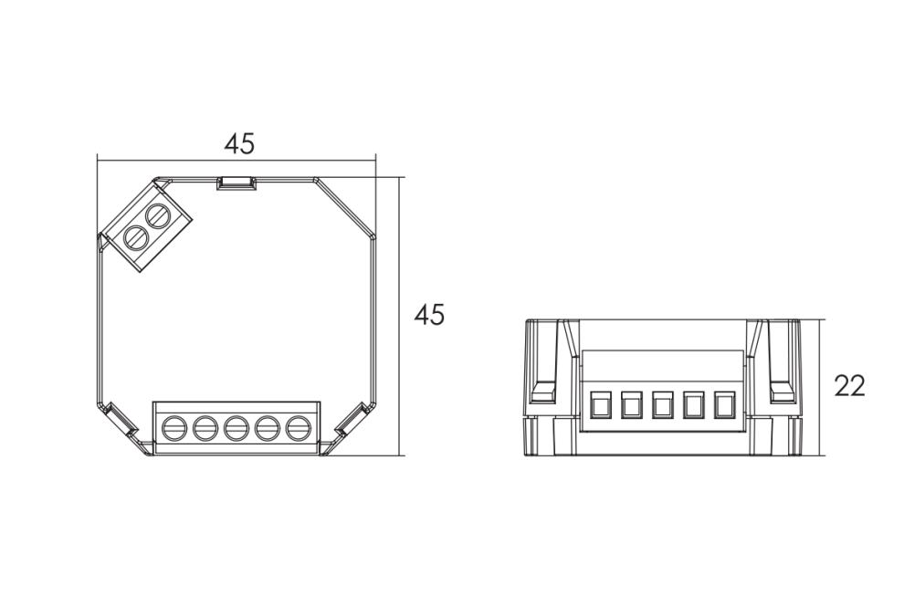 Габаритные размеры 45x45x22 мм.